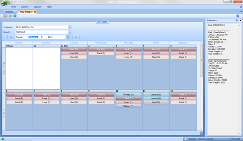 The following screenshots will provide an exclusive sneak peek at the new MoverBiz Dispatch Manager. With a Microsoft Visual Basic .NET front end and a Microsoft SQL Server 2008 back end, this module is the powerhouse of our move management software. Since we are still in production, some shots maybe be incomplete or display test data. | The following screenshots will provide an exclusive sneak peek at the new MoverBiz Dispatch Manager. With a Microsoft Visual Basic .NET front end and a Microsoft SQL Server 2008 back end, this module is the powerhouse of our move management software. Since we are still in production, some shots maybe be incomplete or display test data. | ||
