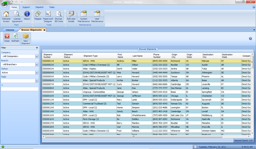 - The Browse Shipment screen allows MoverBiz users to quickly locate a shipment. Each of the column headers in the Browse screen allows for sorting ascending and descending. Additionally, filters at the top of the screen allow users to narrow the results based on criteria of their choosing.