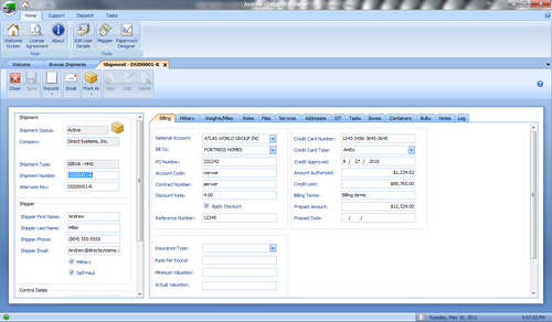 *The Edit Invoice screen is laid out in a clean and concise manner. From here, the Billing Coordinator can quickly and easily add billing charges and commission charges. The invoice address can be sent to a number of different locations and can be filled in with 2 clicks, reducing data entry and saving time. The shipment screen may be opened right next to the Invoice screen for instant reference. | |||