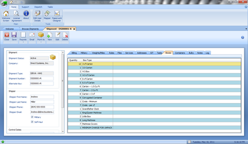 * Creating a new shipment in MoverBiz is a snap. Simply select the Shipment Type, Company and Branch from user-defined dropdowns, enter the customer name and phone number and that’s it! Also, utilizing Direct’s unique Task Manager when creating a new shipment will automatically assign tasks to designated personnel. Stay on top of your Customer relations with the Task Manager. | |||