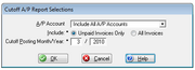 | 16:47, 16 March 2010 | Cutoff AP Report Selections.png (file) | 8 KB | Zach | Screen shot of Cutoff A/P Reports Selections. | 1 | |