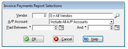 | 17:01, 16 March 2010 | Invoice Payment Report Selections.png (file) | 8 KB | Zach | Screen shot of Invoice Payments Report Selection. | 1 | |
