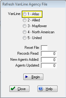 Refresh VanLine Agency File