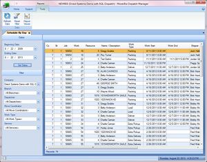 This window will display all of the resources which have been assigned to shipments for the selected day and meet the Filter criteria. It will list the Employee, Vehicle or other resource name, the Shipment Name, the type of work, the Work Begin Time and the Work Ending Time.