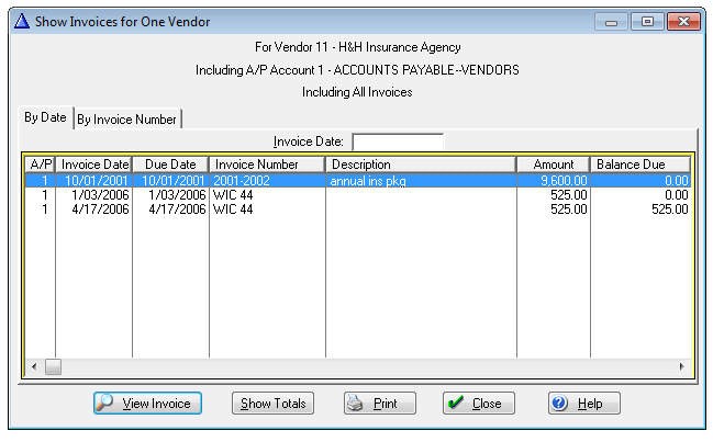 Help:AP1-Show Invoices One Vendor