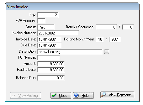 [ View Payments ] Press this button to view the payments that have been made against this invoice.