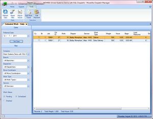 This window will list all of the Work Tickets which are scheduled to be performed on the selected Preferred Date which meet the Filter criteria. The dispatch listing can be printed from this window. The Work Tickets and Shipment can also be edited from this window.