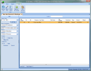 This window will display all of the shipments which arrived in the warehouse on of the selected date and meet the other Filter criteria.
