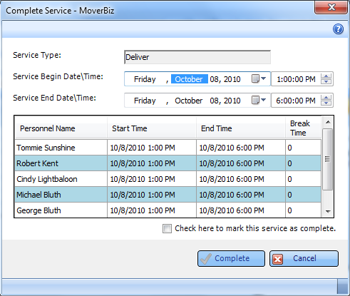 Once a service has been completed, recording or changing the personnel hours can be done with just a few clicks.