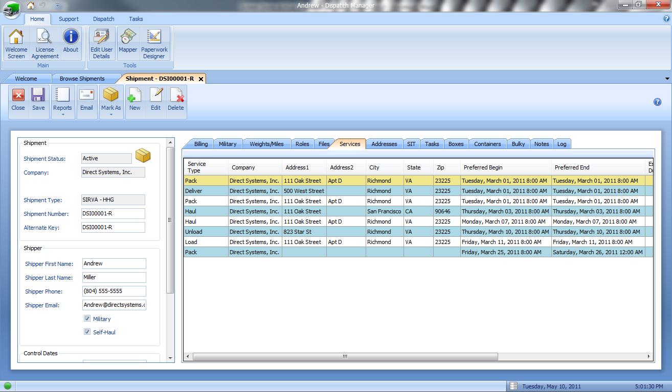 MoverBiz:Screenshots-Services Tab